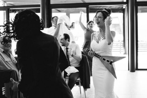 La mayoría de nosotros que pensamos en bodas, nos viene a la cabeza una reunión formal donde los familiares y amigos disfrutan de un día juntos, un día de ensueño que pasa volando. Lo que hicieron Joan y Saray fue una fiesta en toda regla.